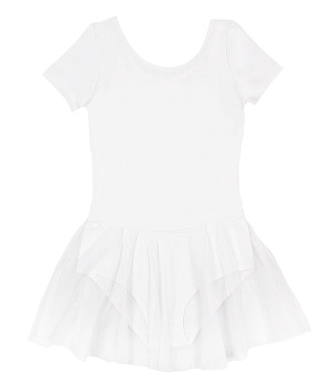 Купальник с коротким рукавом и с юбкой из сетки в цвет основного полотна. Вырез горловины и проймы ножек окантованы бейкой из основного полотна.