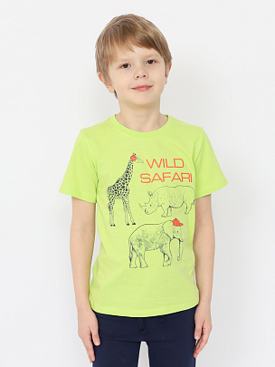 Футболка детская с коротким рукавом. Вырез горловины круглый, обработан притачной бейкой из рибаны с эластаном.