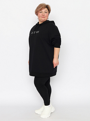 Воротник и манжеты из материала с эластаном.Разрезы в боковых швах.Принт по переду "Гравитация"