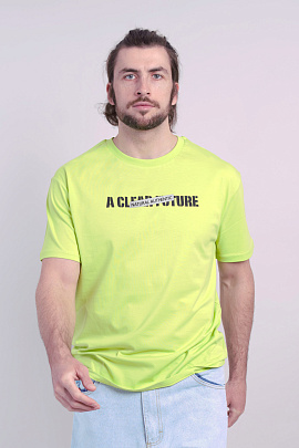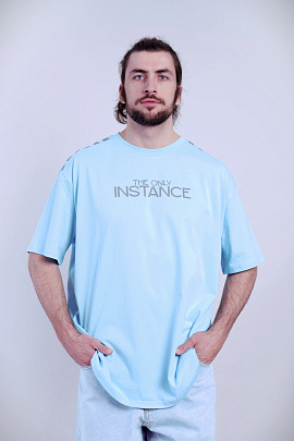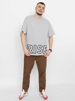 Объемная футболка оверсайз из кулирки повышенной плотности длиной до бедер. Рукав до локтя. Круглая горловина обработана узкой притачной обтачкой из рибаны с эластаном. Горловина декорирована принтом "возврата нет".