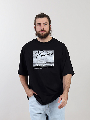 Объемная футболка оверсайз из кулирки повышенной плотности длиной до бедер. Рукав до локтя. Круглая горловина обработана узкой притачной обтачкой из рибаны с эластаном. Горловина декорирована принтом "возврата нет".