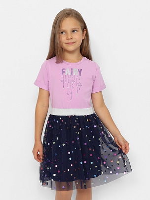 Платье для девочки, из комбинации гладкого и набивного трикотажа с начесом. Украшено принтом. По плечу кнопки.