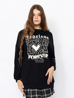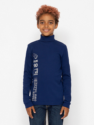 Джемпер для мальчика свободного силуэта с карманом спереди и притачным эластичным поясом по низу. Горловина круглая, обработана притачным воротником из полотна с эластаном. Рукава длинные с эластичными манжетами по низу. Перед джемпера декорирован принтом "Маленькие шаги приводят к большим переменам".
