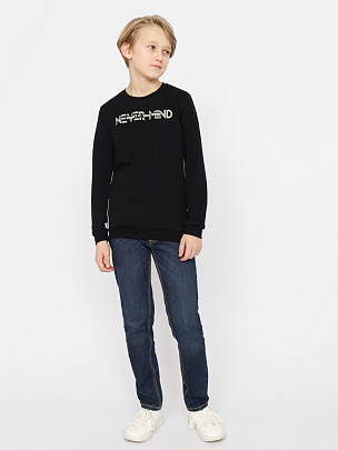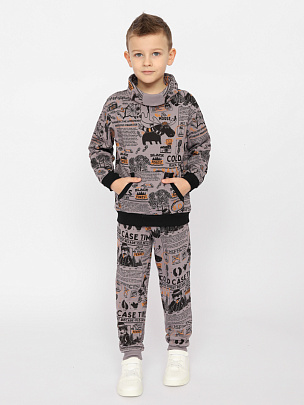 Джемпер для девочки с длинными рукавами и спущенными плечами. Горловина обработана воротником-стойкой из полотна с эластаном. Рукава с эластичными манжетами. Перед джемпера декорирован принтом.