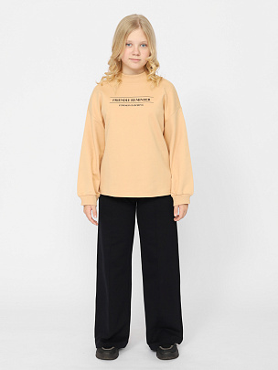 Водолазка с небольшим принтом на спинке для девочки. Модель прилегающего силуэта, с воротником-стойкой с отворотом и длинными рукавами.
