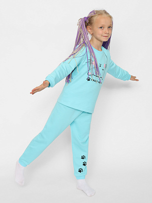 Пижама для девочки (джемпер, брюки) светло-бирюзовая